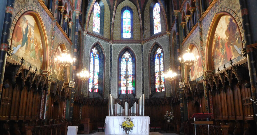 2本の尖塔が印象的で、重厚な外観を持つ教会。地域の歴史と深く結びついた祈りの場であり、街の歴史に根ざした荘厳な雰囲気を醸し出しています。