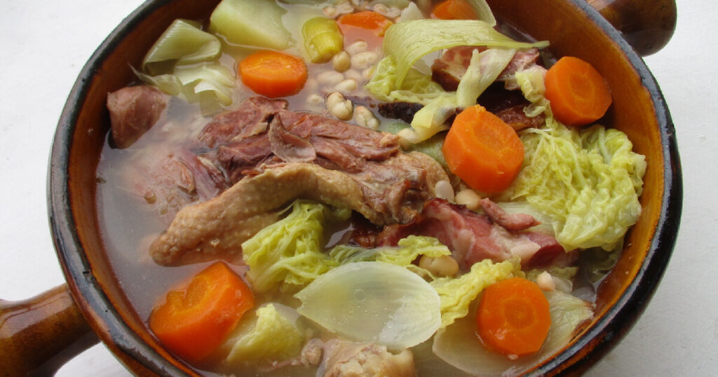 | ガルビュール | 鴨肉や白インゲン豆が入った、ベアルン地方の代表的な煮込みスープ。 |